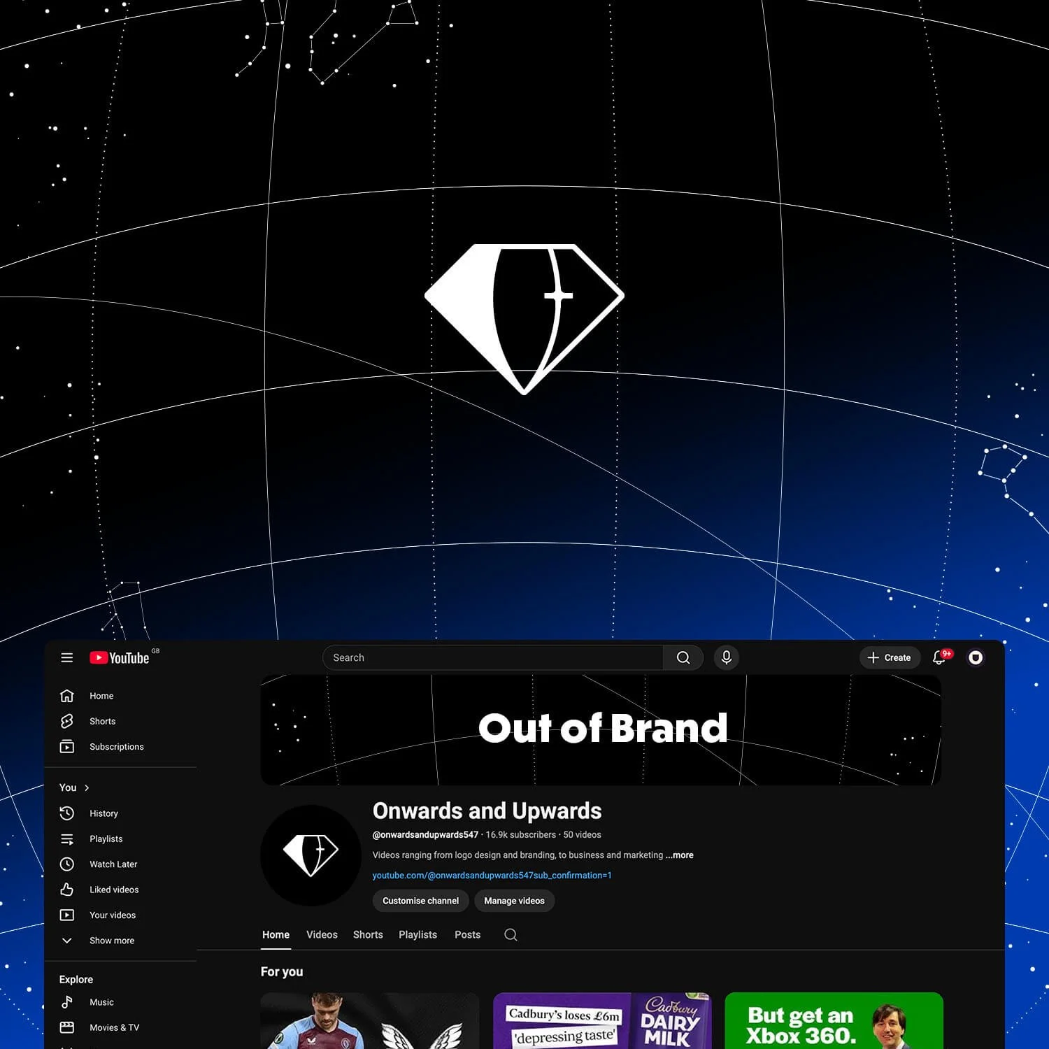 The channel’s name is a pun of the phrase ‘Out of Hand’ as well as ‘Out of this World’. This to me, conjured up imagery that was space themed, such as stars, planets and satellites.