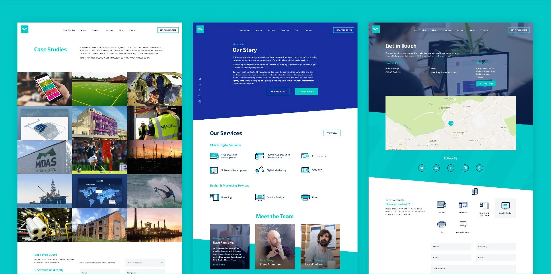 At the beginning of the web design process we started by creating a mood board, which consists of inspirational visuals, colour schemes, and typography. As our aim for the new site was to create a portfolio that felt different from the competition, yet clearly showcases the agency’s core values. We established the site structure, followed by wireframing to ensure the site is simple to navigate.